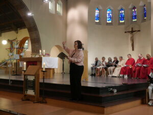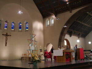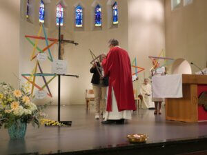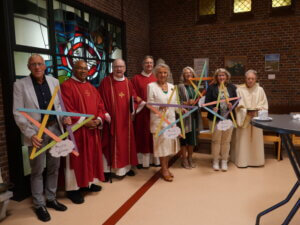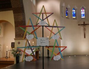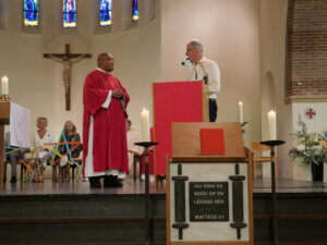 Op zondag 14 september vierden de parochies Bron van Levend Water en H. Cornelius in de Willibrorduskerk te Heiloo de opening van het werkjaar. Het nieuwe jaarthema ‘Durf te dromen’ werd gepresenteerd. Ook stelde diaken Steve Purperhart zich voor aan de kerkgangers en hij vertelde over zíjn droom. Een groot koor uit de regio verzorgde de zang en het jaarthemalied, geschreven én gecomponeerd door Marja Kraakman werd voor het eerst gezongen door Zana Naidionova. De vier vertegenwoordigers uit de locaties kregen als symbool een ster mee, die een plekje kan krijgen in de eigen kerk. Ook voor het steunpunt Egmond-Binnen was er een ster gemaakt. Voor iedere kerkganger was er tenslotte een beschilderd steentje met een persoonlijke tekst. Een inspirerend begin van het nieuwe werkjaar!
