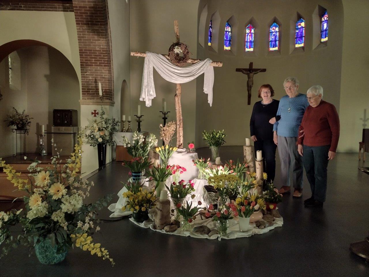 Er is op Paaszaterdag hard gewerkt aan de voorbereidingen voor de Paaswake in de Willibrorduskerk: