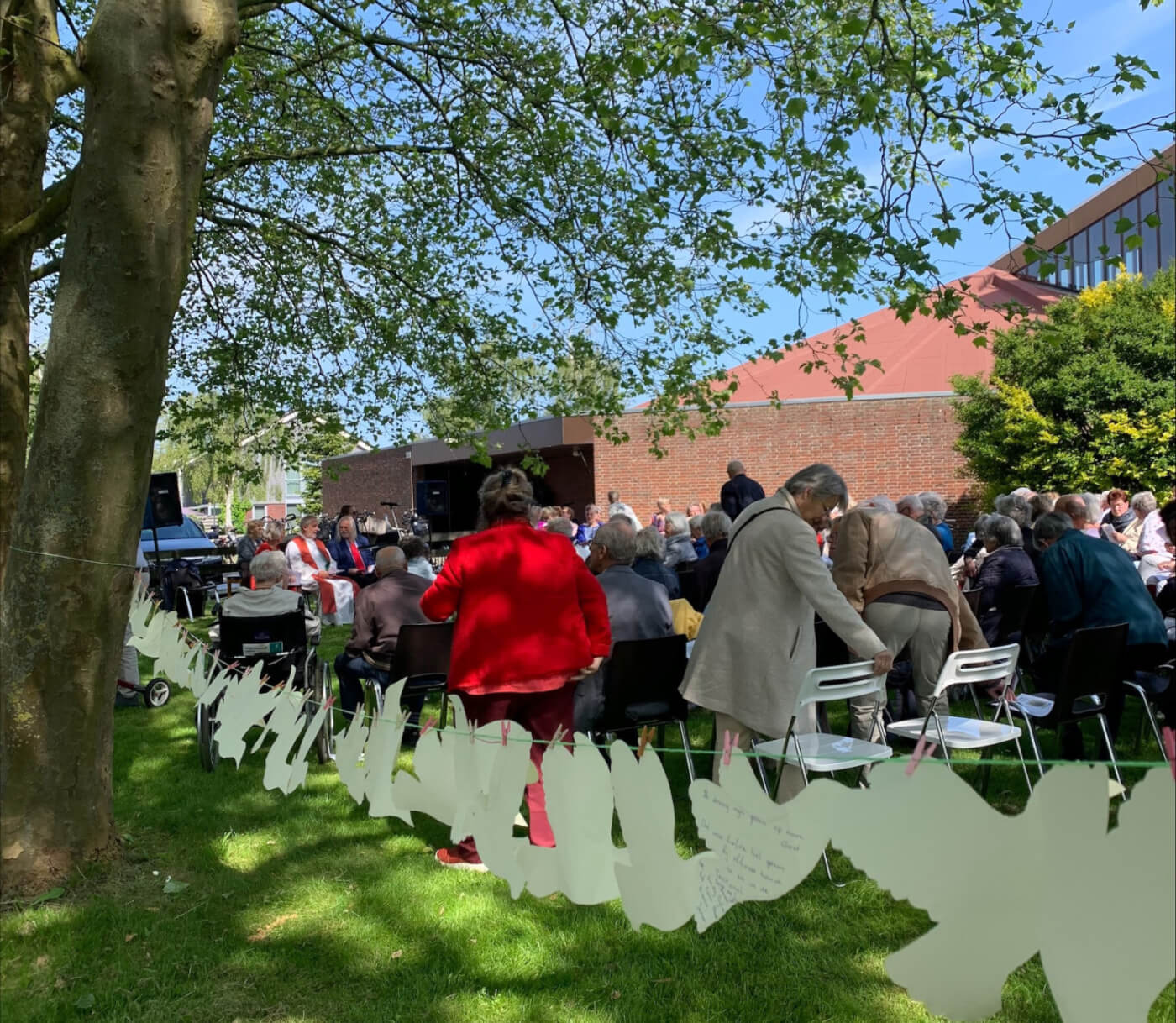 De tuinmannen dragen zorg voor het onderhoud van de tuin rondom de kerk en pastorie. Op woensdagochtend is men in Egmond aan den Hoef werkzaam.