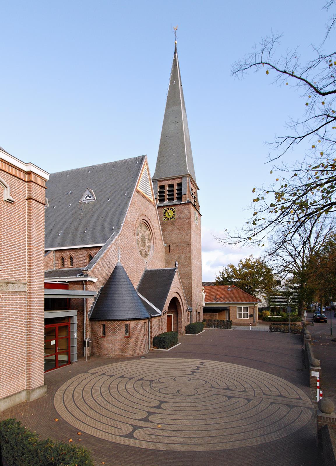 Bij aankomst op het kerkplein van de Willibrorduskerk hebt u waarschijnlijk gezien, dat er een patroon is aangebracht in de stenen voor de ingang van de Kerkstraat. Het figuur stelt een labyrint voor. Het is in 2007 aangelegd als cadeau van en voor de parochie ter gelegenheid van het 25 jarig priesterfeest van pastor Herman Helsloot.